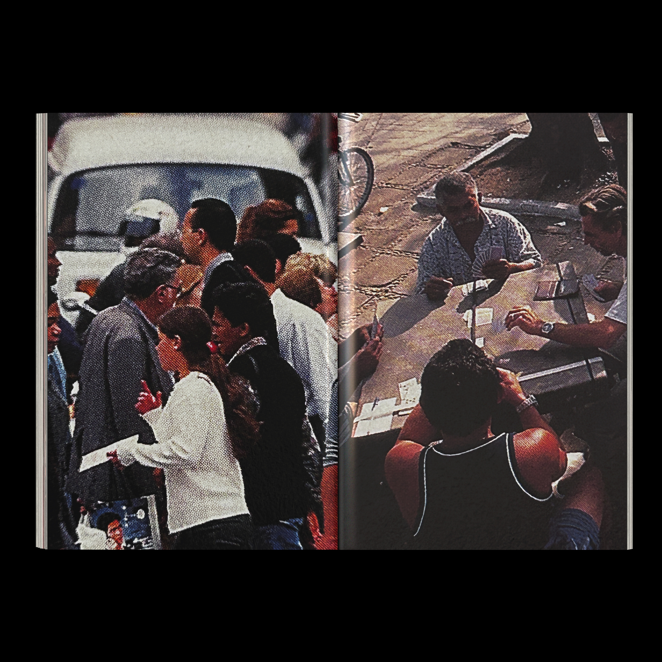 PT RE1999 é um zine que apresenta uma série de refotografias tiradas de uma revista semanal brasileira publicada em novembro de 1999, no limiar do novo milênio. O título funciona como um marcador de retorno: re como revisitar, rever, recordar, recapturar. Cada imagem propõe uma tentativa de voltar no tempo, de reencenar um instante e observar como o ato (re)fotográfico altera aquilo que vemos. De mão em mão, o exemplar desta revista atravessou o tempo até chegar ao presente.